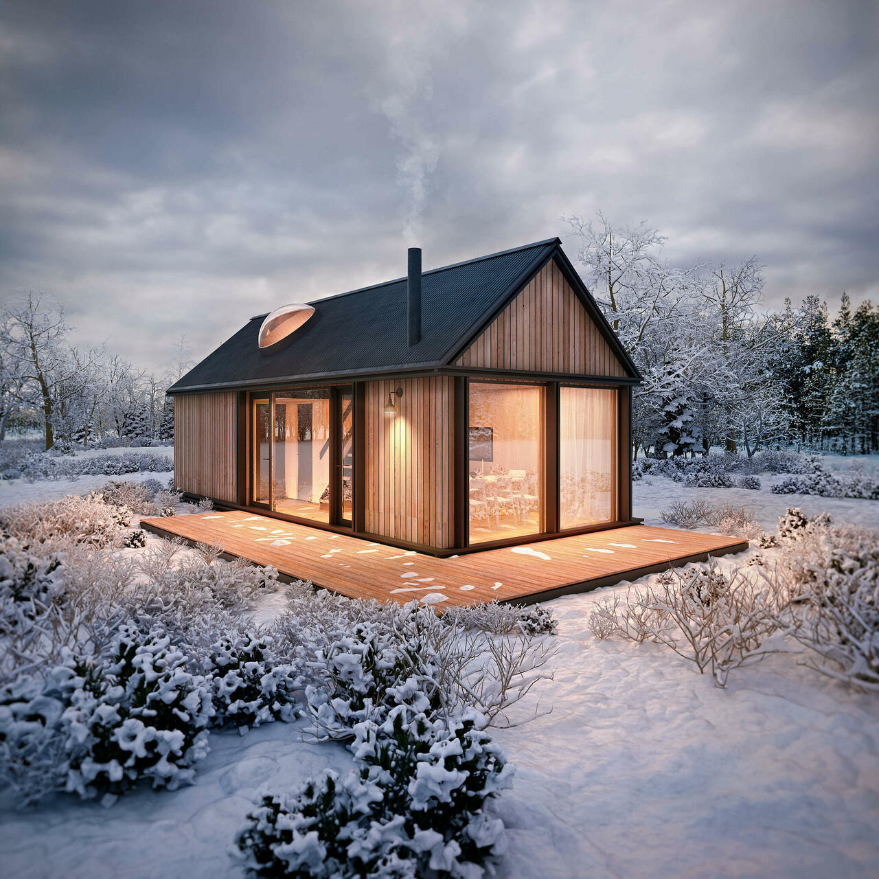 Delivered to your property with a concrete foundation, complete with integrated connection points for internal communications, MUHU is designed for convenience. The 200mm stone wool insulation in the walls and 300mm in the roof ensures a cozy atmosphere year-round.